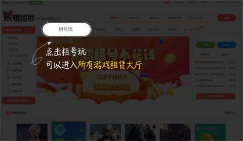 2、也可直接点击页面中的【租号玩】快捷入口进入主界面。